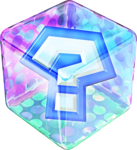 I Cubi Oggetto appaiono per la prima volta in Mario Kart 64, e hanno l'aspetto di un ottaedro arcobaleno con un ? all'interno.