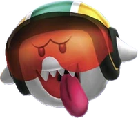 Gara Boo è un Boo gigante con indosso un casco con una visiera arancione.