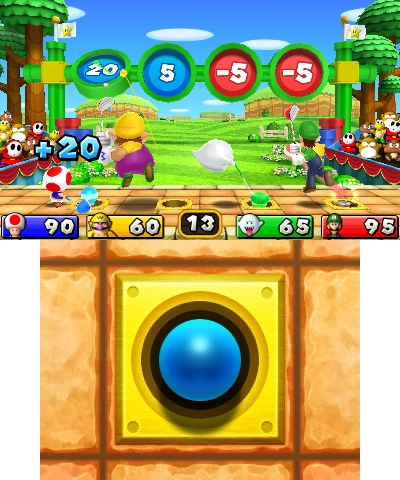 Il minigioco si svolge in un campo da golf del Regno dei Funghi. Lo scopo del gioco è quello di ottenere più punti possibile, per farlo bisogna colpire le proprie palline da golf con la mazza e colpire i bersagli presenti per ottenere o a volte perdere i punti mostrati sopra, per colpire i vari bersagli bisogna muovere lo stilo in una certa direzione. Allo scadere del tempo limite il giocatore che ha più punti vince.
