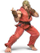 - Ken: Ken si unisce alla lotta in qualità di personaggio Eco di Ryu. Le differenze fra i due risalgono al gioco originale: l'Hadoken di Ken ha una forma diversa, il suo Shoryuken è infuocato e lui si muove un po' più velocemente. Ha due Smash finali, Shinryuken e Shippu Jinraikyaku.