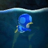 Mario Pinguino indossa un costume blu con le pinne di pinguino e un becco sopra la testa e anche una salopette rossa, con i bottoni gialli.