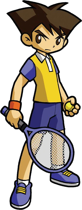 È un ragazzo adolescente con capelli e occhi castani. Indossa una maglietta gialla a miche corte blu e pantaloni e scarpe dello stesso colore delle maniche.
