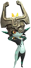 La Principessa Midna è la principessa del Regno del Crepuscolo apparsa in The Legend of Zelda: Twilight Princess. Appare come Trofeo assistente da Super Smash Bros. per Nintendo 3DS / Wii U.