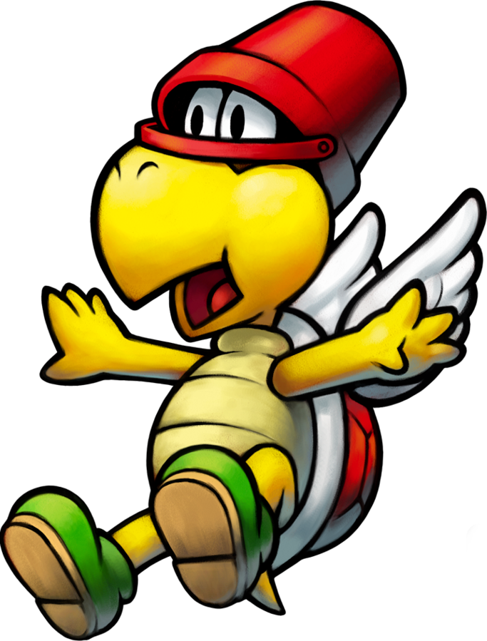 • È uno dei pochi Paratroopa ad avere il guscio di un colore diverso rispetto alle scarpe. di conseguenza non si può sapere se è un Paratroopa Verde o un Paratroopa Rosso.