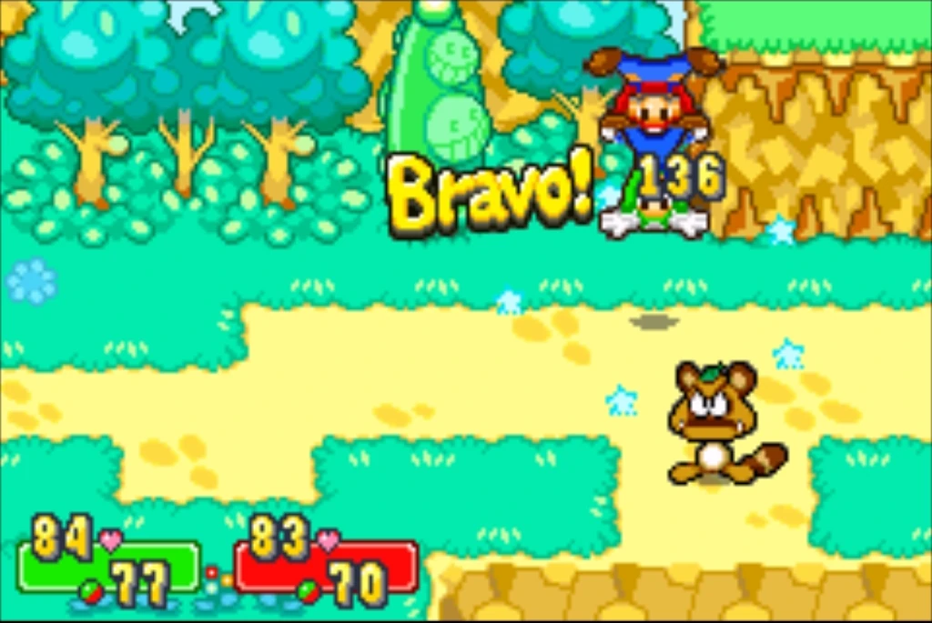 Nella versione avanzata, Mario e Luigi si separano, attaccando ciascuno verso un nemico. I comandi sono: A per iniziare l'attacco, B per separare i due fratelli, B nuovamente quando Luigi si avvicina al nemico che sta prendendo di mira, e A nuovamente quando Mario si avvicina al nemico che sta bersagliando. Se vi e un solo nemico, i comandi sono gli stessi, ma loro bersaglieranno entrambi il nemico (A > B > B > A). Questa mossa si sblocca facendo 8 volte la mossa base con successo.