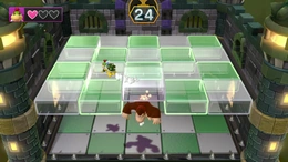 Il minigioco si svolge in una fortezza di Bowser Junior in mezzo ad un cielo tempestoso, lo scopo del gioco è quello di sconfiggere Bowser Junior facendogli perdere i cuori. Per farlo bisogna correre in giro e colpire da sotto i blocchi sui quali corre Bowser Junior in modo da stordirlo tre volte entro il tempo limite, è possibile colpire al massimo quattro blocchi in contemporanea. Se si riesce a far perdere a Bowser Junior tutti i cuori entro il tempo limite si vince, in caso contrario sarà Bowser Junior a vincere.