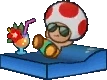 È un normalissimo Toad rosso che, dopo aver ripristinato l'oasi, indossa un costume da bagno verde e degli occhiali da sole.