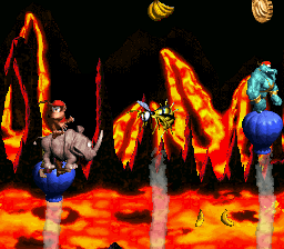 Como o nome indica, dupla vai ter pular nos Krockheads pra atravessar os poços de lava e ser ajudada pelo Squitter.
