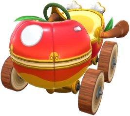 The Apple Kart made its debut into the game during the Valentine's Tour. It is known for being the signature kart to Baby Peach (Cherub). This kart increases the duration of Jump Boosts and the points earned for performing them.
