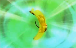 When used, Diddy stretches his body in the shape of a banana, similarly to when using Acrobatic Banana in Mario Power Tennis. After doing this a few times, Diddy hits the ball, which then flies in the direction he hit it in, but the ball does a very sharp curve, making it hard for a fielder to catch.