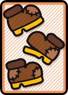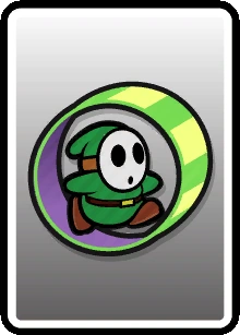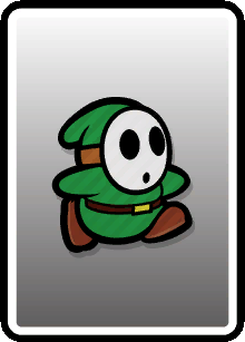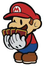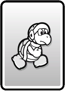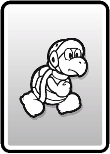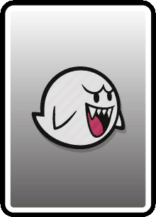 These cards are used in boss or enemy battles as a main attacking element. Basic cards consist of anything from boots to hammers, flowers, pow blocks, and can even be used as defensive items. These cards can come in 4 different types: the worn-out version, normal version, big version, and huge version. These cards can be defined by the different backgrounds on the cards themselves. The bigger and better conditioned card will give a greater effect when used.