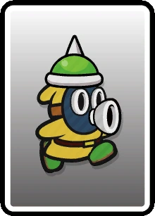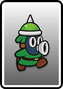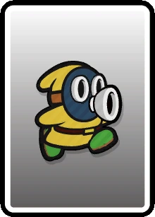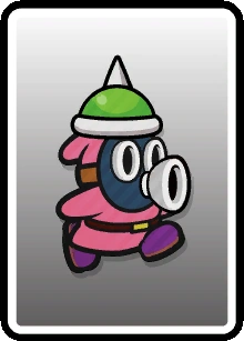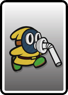 | Enemies | Enemies | Blooper (10-Stack · Poison) • Bob-omb • Boo (10-Stack) • Buzzy Beetle (Big · Gang · Small (Gang) · Spike Top · Tower) • Cheep Cheep (Small) • Dino Rhino (Wild) • Dry Bones (5-Stack) • Fuzzy (Stack) • Goomba (Accordion · Bone · Mega · Paper-Cone · Para · Small (Gang · Wheel)) • Hammer Bro (Boomerang · Chariot · Circus · Fire (8-Stack) · Ice · Juggler · Sledge (Shady) · Small) • Koopa Troopa (6-Stack · Paratroopa (10-Stack)) • Ninji • Piranha Plant (Fire · Ptooie) • Podoboo (Black) • Pokey (Green) • Rocky Wrench • Scaredy Rat (10-Stack) • Shy Guy (4-Stack · 5-Stack · Animal Trainer · Coal · Gold · Laundry · Paint · Pry · Roller · Shield · Shunned · Silver · Slurp · Soggy · Sombrero · Spike · Trampoline · Unicycle) • Snifit (Chariot · Slurp · Spike · Whistle) • Spike • Spiny • Swooper |