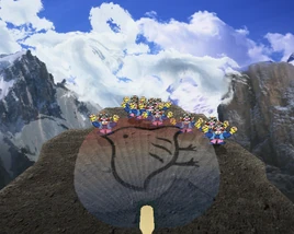 The microgame takes place on top of a mountain, with a few more cliffs being visible in the background. The sky is mostly cloudy, but a little bit of blue sky is visible in the upper portion. The fan used in the microgame has a bird on it, but in the Japanese version, the fan has the kanji「祭」(matsuri) printed on it, which means "festival."