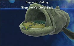 The Bigmouth Galaxy is a galaxy in Super Mario Galaxy. It is a small water-based galaxy. It is accessed by a Hungry Luma outside the Bedroom, which only appears when Soaring on the Desert Winds has been completed. Penguru is found in this galaxy.