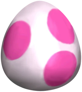 Birdo Eggs, or Birdo's Eggs, are a type of egg used by Birdos, including the signature character. Since their debut in Yume Kōjō: Doki Doki Panic (released overseas as Super Mario Bros. 2), Birdo Eggs have been used as projectiles that Birdo spits out of its cannon-like snout. In some appearances, such as their debut, Birdo Eggs are a plain white egg. Since Mario Kart: Double Dash!!, several subsequent appearances of the Birdo Eggs give it magenta spots, retroactively making them like Yoshi Eggs, which have distinct green spots.