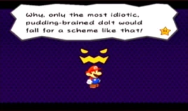 The Boo Heroine was a Boo that was known for her cold disposition. However, after seeing the Stalwart Koopa fight so bravely, her personality changed and she helped him out using her magic. She then says that they cannot fight the demon alone and need the Goomba from Boggly Woods and the Toad from Petal Meadows. The Boo Heroine and the Stalwart Koopa joined up with the Goomba and the Toad and they all fight the Shadow Queen. Following the Wise Goomba's orders, the Boo Heroine and the others used the Crystal Stars to seal up the Shadow Queen not before the demon cursed them. The Boo Heroine then hides her Crystal Star in a steeple and her soul was sealed away near the nearby town.