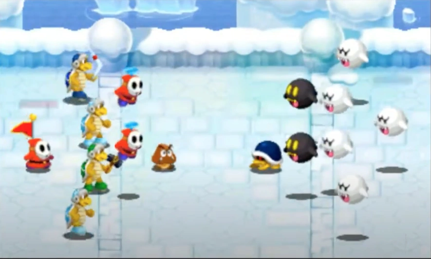 Amp • Astro Goomba • Banzai Bill • Bat • Big Amp • Big Gringill • Big Wiggler • Blooper • Bob-omb • Bomb Boo • Bomp • Boo • Boomerang Bro • Bullet Bill • Cheep Cheep • Chomp • Chomp Pup • Choppah • Clam • Cluckboom • Cosmic Clone • Crabber • Digga • Dry Bones • Elite Octoomba • Fizzlit • Flaptack • Flipbug • Flimp • Fuzzy • Gargantua Koopa Troopa • Gold Chomp • Golden Gummit • Goomba • Grand Goomba • Gringill • Ground Urchin • Gummit • Hammer Bro • Huge Paragoomba • Jack O'Goomba • Jammyfish • Kleptoad • Koopa Troopa • Lakitu • Li'l Brr • Li'l Cinder • Magikoopa • Magmaargh • Magmaw • Mandibug • Mattermouth • Mega Boo • Mega Thwomp • Micro Mecha-Bowser • Micro Goomba • Mikey Mine • Octoboo • Octoguy • Octoomba • Octopus • Paragoomba • Pinhead • Piranha Plant • Piranhacus Giganticus • Podoboo • Pokey Head • Preying Mantas • Prickly Piranha Plant • Puffer Fish • Pupdozer • Rhomp • Ring Beamer • Sentry Beam • Silver Chomp • Skeeter • Slurple • Smeech • Snoodle • Spiky Gummit • Spiky Piranha Plant • Spiky Topman • Spiny • Spiny Hermit • Spiky Stretch Plant • Spiny Egg • Spoing • Sprangler • Spring Robot • Spring Topman • Starbag • Swaphopper • Thwomp • Topman • Topmini • Tox Box • Twirlip • Undergrunt • Undergrunt Gunner • Urchin • Venus Flower Trap • Whimp • Whomp • Wiggler