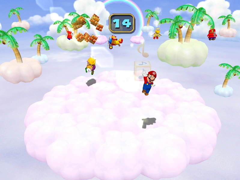 - Rules: "Jump around the cloud and try to find as many invisible blocks with a musical note on them as you can."