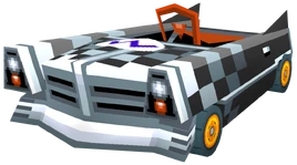 The Brute appears to be based of the Wario Car from Wario Land 4 and Mario Kart: Double Dash!!, but with a black and gray checkered pattern instead of purple.