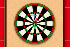Bull's-eye involves throwing darts at a dart board. The player has eight darts, and like in an actual darts, the aim is to throw each dart at the red bull's-eye. The player can use the
