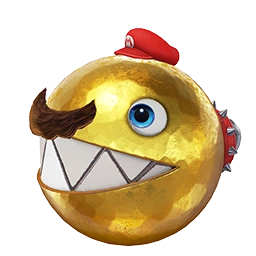 Mario can capture a Chain Chomp and pull back on its chain in order to have it fly off in the opposite direction. This allows him to destroy rocks and other obstacles that Mario could otherwise not destroy himself. |