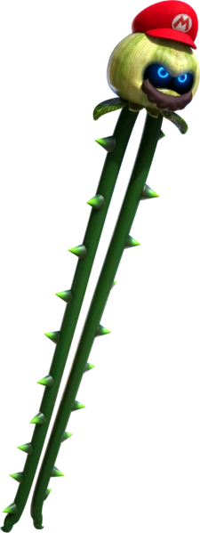 Mario can capture Uproots in order to stretch their legs and reach high places that he could otherwise not reach. Mario can also use the Uproot to break otherwise unreachable Rock Blocks located high off the ground. |