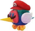 Mario can capture a Cheep Cheep in order to swim faster and better while in the water. If the Cheep Cheep leaves the water, it will bounce around until it re-enters water. As a Cheep Cheep, Mario will not need to come to the water's surface for air. |
