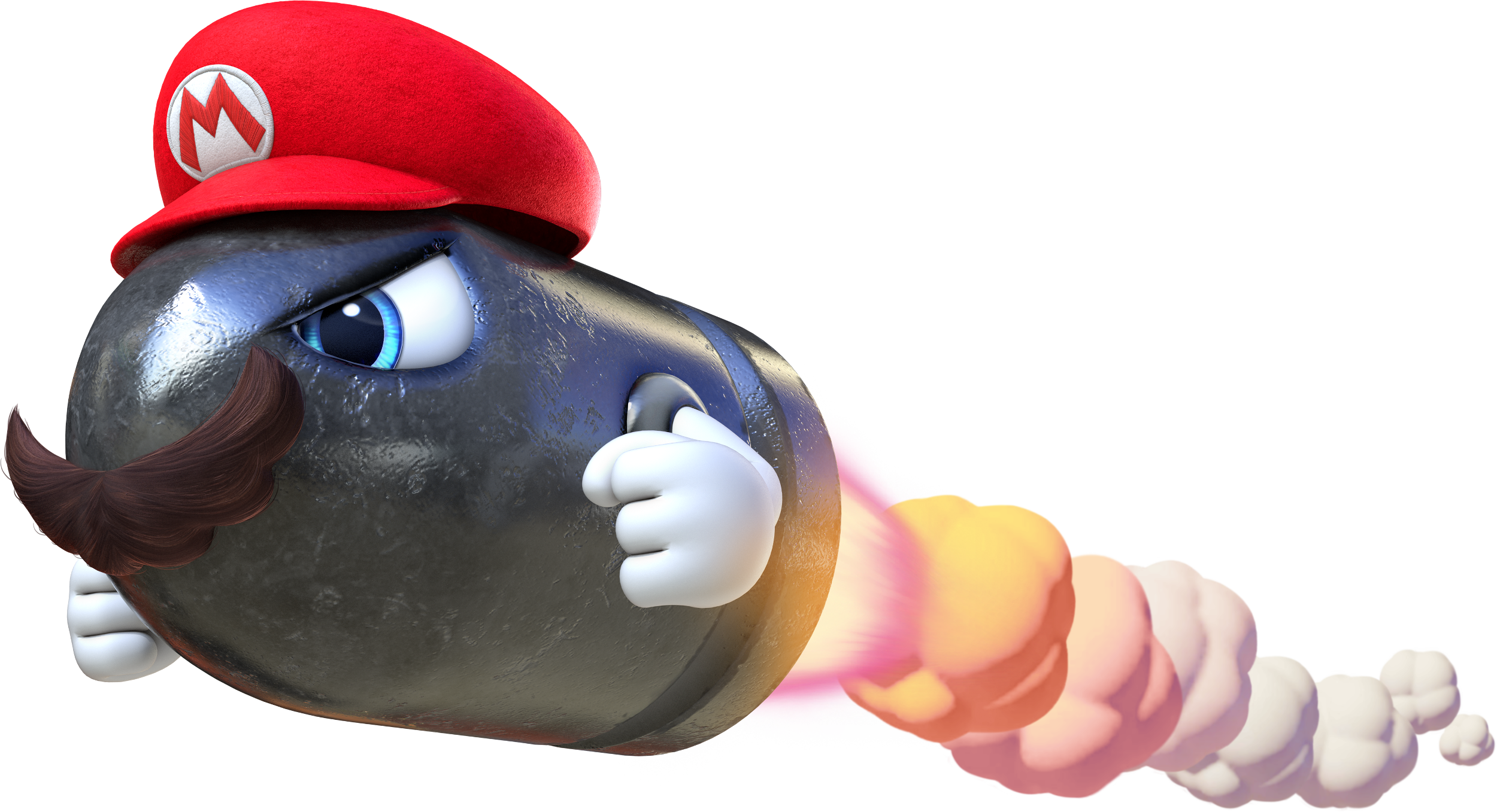 Mario can capture a Bullet Bill and use it to fly around and destroy stone blocks or other objects that he could otherwise not destroy. After a short time, however, the Bullet Bill will explode, releasing Mario and dropping him off where ever it exploded. |