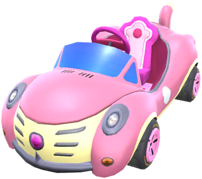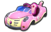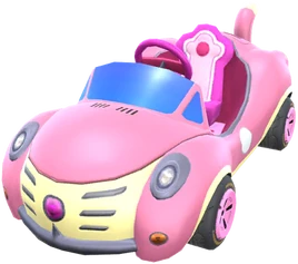 It is a pink body, resembling somewhat of a Volkswagen New Beetle, with cat motifs such as whiskers, a tail, and ears (embedded on the windshield). This vehicle is based on Princess Peach's cat form in Super Mario 3D World.