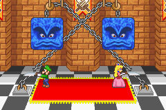 Two characters each have to saw the chains suspending a Thwomp above their opponent's heads by quickly alternating between