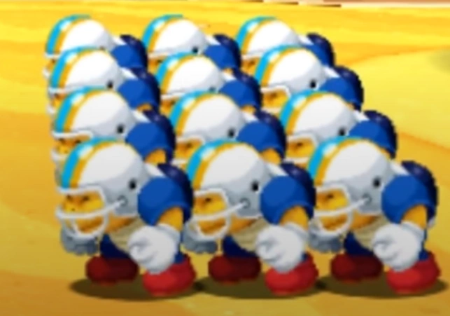 In battle, they attack by charging into a brother from the front and behind, which must be avoided using a Jump. When some Chargin' Chucks are defeated, the remaining ones will call for backup; causing more Chucks to appear. When enough Chargin' Chucks are defeated, they will become enraged. Eventually, they will stop calling for reinforcements allowing for them to be defeated. Once defeated, the trio continue back to the Twinsy Tropics Dungeon.