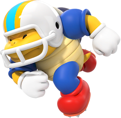 Chargin' Chucks are enemies which first appear in Super Mario World. They are the Koopa equivalent of a football player. They are similar to those in the Super Mario World cartoon, right down to the distinctive black Koopa Shell, football cleats, and signature helmet guard.