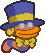 Chuck Quizmo is a worm-like creature that is orange in color with blue stripes. He also wears a blue top hat and a yellow bow.