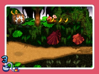 The microgame is based on the Super Nintendo Entertainment System game Donkey Kong Country. It features Donkey Kong in a Barrel Cannon (although it uses the sprite of a Blast Barrel), and he has to launch out of it and collect a line of three bananas in the air. If done successfully, the player wins the microgame, but if either time runs out or Donkey Kong misses the bananas, the player loses.