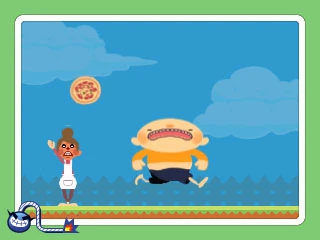 - 1st level difficulty: The large boy must catch a large pizza that travels a short distance.