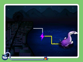 Instead of the city above it, the city is next to the electric fish. If the game is won, the city will light up and the lights also appear in the sky.