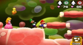 The Flab Zone is an area inside of Bowser in Mario & Luigi: Bowser's Inside Story. In this area, Princess Peach gets kidnapped once again, this time, not by Bowser. She gets kidnapped by six Beta Kretins.