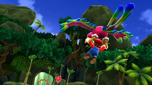 Fluzzard is a character in Super Mario Galaxy 2. He is, as said by the jibberjays, a shy parrot. In all the galaxies he appears, Mario has to talk to a certain jibberjay to begin a race riding Fluzzard. Mario has to guide Fluzzard to the goal, and if done successfully, a Power Star appears for him to collect.