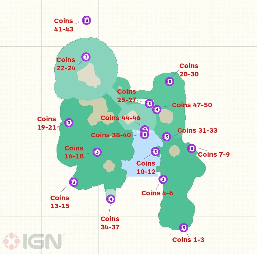 - 29: Next to the Stone Arch: Near the Fossil Falls Heights' Checkpoint flag, there will be a little grass bridge. Jump off the left of it, and there will be a Power Moon.