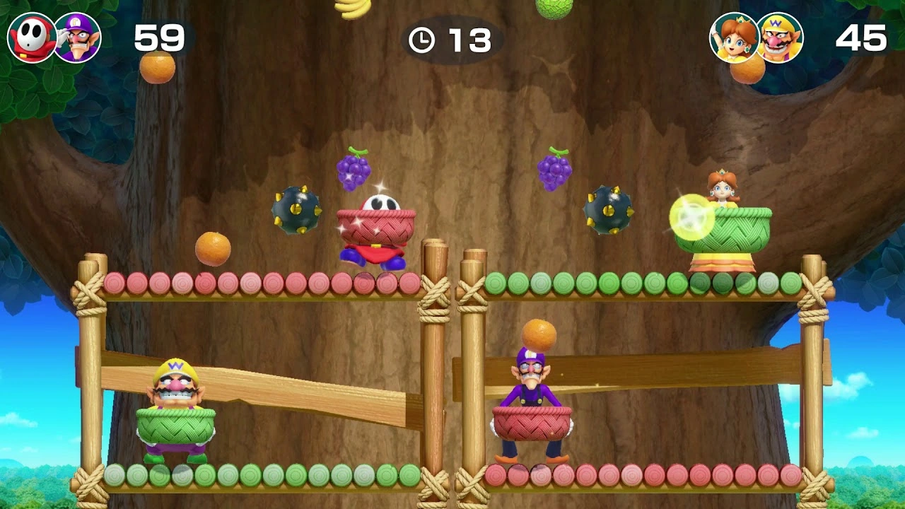 Fruit Forecast is a 2-vs-2 minigame in Super Mario Party.