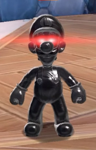 Fury Shadows are a new type of enemy that make their debut exclusively in the Bowser's Fury campaign of Super Mario 3D World + Bowser's Fury. They are black, goop-covered creatures with bioluminescent red eyes, resembling Luigi. A yellowish-orange health-bar rests above their heads, showing how much damage is required to destroy them.. They seem to possess many of Mario's abilities, such as the Wall Jump. They taunt the player if they are not pursued.