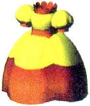 The Fuzzy Dress is a personal armor of Princess Toadstool's featured in Super Mario RPG: Legend of the Seven Stars. It can be bought from a shop in Nimbus Land for 70 coins. Equipping the Fuzzy Dress increases Princess Toadstool's Defense by 36 and her Magic Defense by 18.