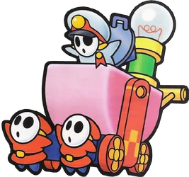 He summons different kinds of Shy Guys to fight for him. He first calls Stilt Guys and Shy Stacks to fight and will begin fighting once they are defeated.