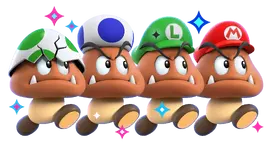 Goomba Mario, Goomba Luigi, Goomba Toad, Goomba Yoshi