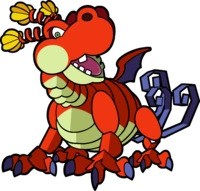 Hooktail is a dragon who appears as a boss in Paper Mario: The Thousand-Year Door. Hooktail is fought at her castle during the events of Chapter 1. She is a colossal dragon that has terrorized Petalburg. She ate many of its residents who came to her castle to slay her, like Kolorado's father and Koops' dad, Koopley. When Mario, Goombella and Koops came to her castle to obtain the first Crystal Star, the Diamond Star, they were given a clue on how to defeat Hooktail once they found the dead body of Kolorado's father-- Hooktail cannot stand chirping sounds, especially ones that start with cr- and end with -icket, Hooktail once ate a cricket during her travels and had food poisoning from it and since then, she feels queasy every time she hears the sound of a cricket.