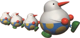 Huffin' Puffins, also spelled Huffin Puffins, are obese flightless birds and allies in the Yoshi franchise. They first appear in Super Mario World 2: Yoshi's Island. Huffin Puffins are always found in a group of a parent and a few children.