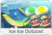 Ice Ice Outpost is a track in the Triforce Cup DLC in Mario Kart 8. The track is a snow themed course, with tents surrounding the starting area. The course splits into two ways to go on (One side being yellow, and the other green) barely with off-road.