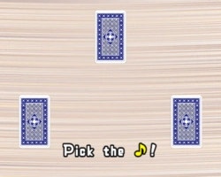 The microgame starts with cards facing upright and the player is told which card they must find; then the cards are flipped. The player must pick it up when the expected card comes to the player's hand. The player loses the microgame if he or she picks up the wrong card, or if the microgame runs out of time.