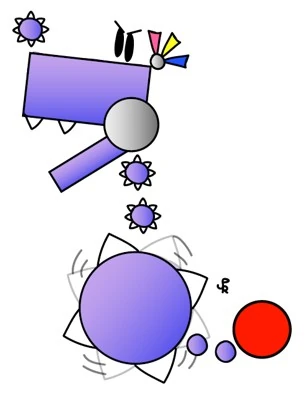 A Jawbus is an enemy found in the game Super Paper Mario. They resemble a blue wheel with four spikes and a joyous face in the center. It also dons a yellow and red flashing tail which is the enemy's weak spot. When approached, A Jawbus will push its "face" out of the center wheel and form a dinosaur looking face with a snapping mouth. Getting around the creature is futile as it can extend its neck. Only by flipping to 3-D and walking behind it to its still-Remaining weak spot you can defeat it. Its name refers to its large snapping jaw.