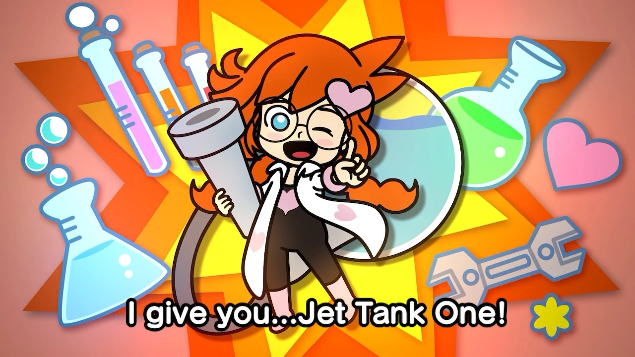 Penny uses the Jet Tank One whenever the player plays as her in a microgame. The player can tilt the in a direction to have Penny spray water toward that direction as the recoil pushes her into the opposite direction. The water sprayed from the Jet Tank One serves as projectiles capable of affecting objects in the microgames. The player can press